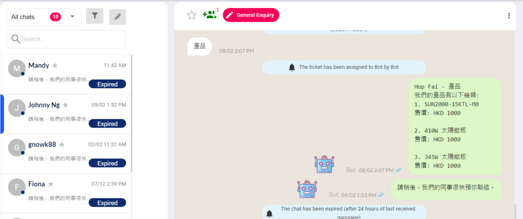 Our Solution(WhatsApp Chatbot) —— Hop Fai Energy (HK) Limited Manage Online Chatbot Conversation Flow Setting Conditional Reply WhatsApp Merchat Setting Response Database Manage Keywords
